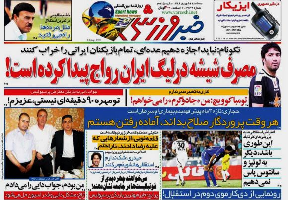 نگاهی داریم برتیتر و نیم صفحه اول روزنامه های ورزشی چاپ امروز صبح کشور۲/۶/۱۳۸۹